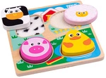 Ciekawe puzzle sensoryczne dla maluszków! 4 zwierzątka skrywają różne faktury – dziecko może poczuć np. wełnę owieczki czy piórka kaczki i dopasować klocek w odpowiednie miejsce.
