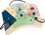 Tablica manipulacyjna z motywami lata i morza. Wykonana z drewna z paskami ułatwiającymi montaż.