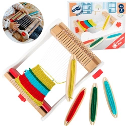Zestaw dla miłośników robótek: drewniane krosno, bidło, igła, sznurek do osnowy i 3 kolorowe włóczki. Stwórz dywanik, zakładkę do książki lub szalik dla misia!