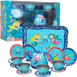 Zestaw do herbaty z motywem syrenek (15 elem.) zawiera czajniczek, filiżanki, talerzyki i tacę. Wykonany z metalu, idealny do kreatywnej zabawy i odgrywania ról.