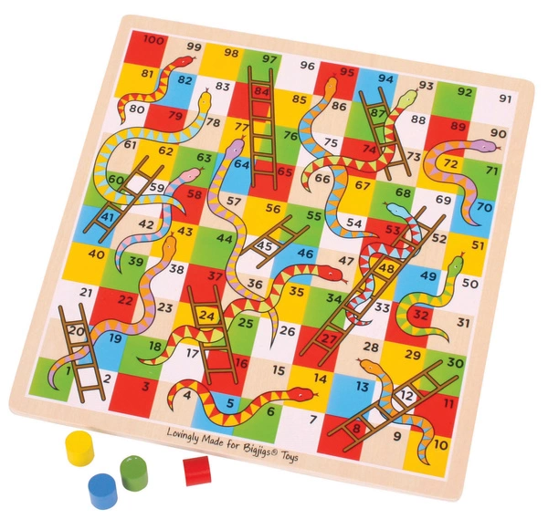 - Klasyczna gra Węże i Drabiny. Przeznaczona dla od 2 do 4 graczy. Wykonana z drewna. Doskonała dla młodszych dzieci.