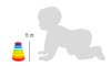 Piramidka znakomicie ćwiczy zdolności manualne i koordynację rączka-oko, wspiera też zdolność obserwacji i logicznego myślenia dziecka, podczas właściwego dobierania klocków.