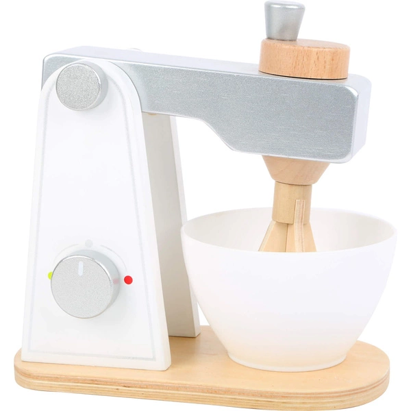 - Maluszek ciekawy kuchni? Drewniany mikser z miseczką to idealna zabawka! Podnieś ramię, ustaw miskę, zakręć gałką i gotowe — nauka przez zabawę w pięknych kolorach!