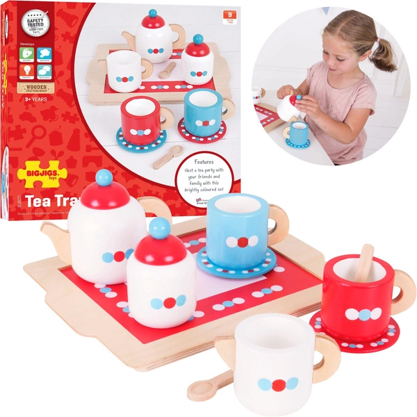 SERWIS DO HERBATKI Dla Dzieci 12 Elementów Drewniany Dzbanek Filiżanki Taca
