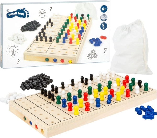 Kolorowe pionki w 6 barwach: zielony, granatowy, żółty, czerwony, czarny i biały