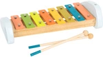 Ten pięknie wykonany, 8-płytkowy ksylofon z drewnianymi pałeczkami wprowadza malucha w świat dźwięków. Kolorowe płytki i solidne wykonanie.